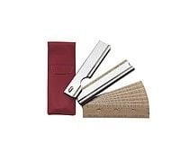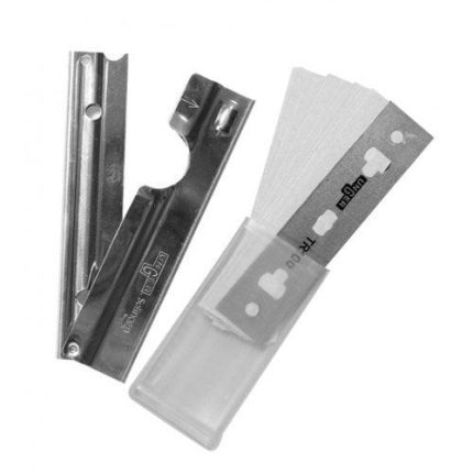 Solingen çeliğinden üretilmiş olan çift tarafı keskin olan cam jileti 10 cm. genişliğindedir.10’lu paket olarak set içindedir.Cam jilet aparatı paslanmaz