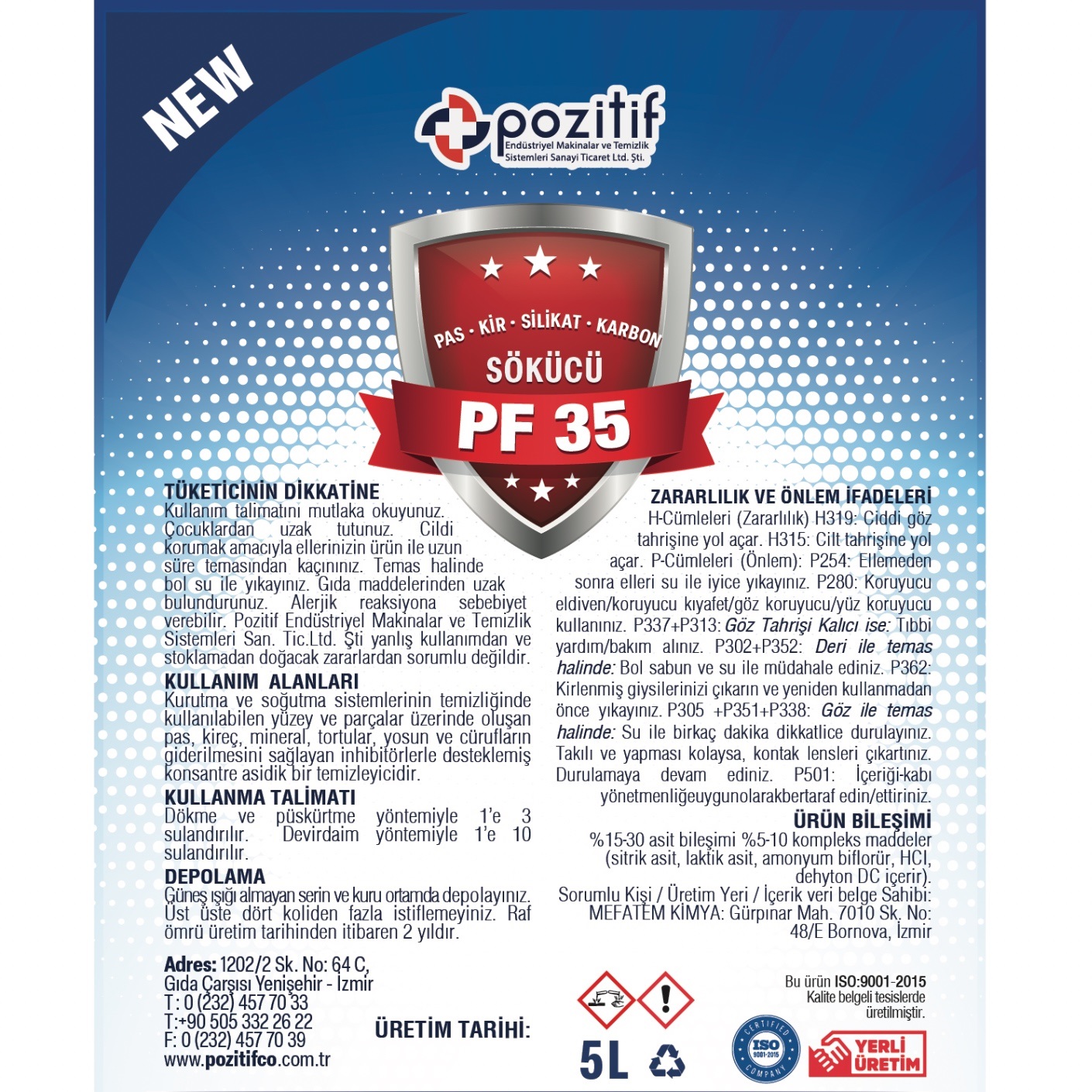 Kurutma ve soğutma sistemlerinin temizliğinde kullanılabilen yüzey ve parçalar üzerinde oluşan pas, kireç, mineral, tortular yosun ve cürufların giderilmesini sağlayan inhibitörlerle desteklemiş konsantre asidik bir temizleyicidir.