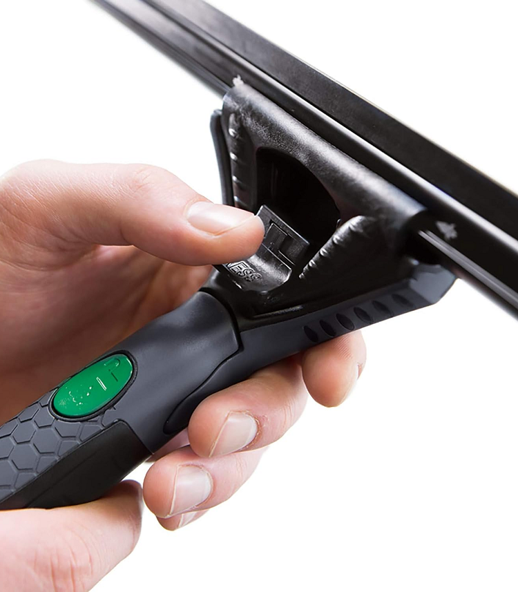 - İki bileşenli ergonomik sap sayesinde saatler boyu yoğun temizlik sonrasında bile sorunsuz ve kolay çalışma sağlar. Yüksek kaliteli kaymaz kauçuk kaplama daha iyi konfor ve mükemmel bir kullanım sağlar. Üst taraftaki baş parmak bölgesi ilave baskı uygulamayı mümkün kılar.