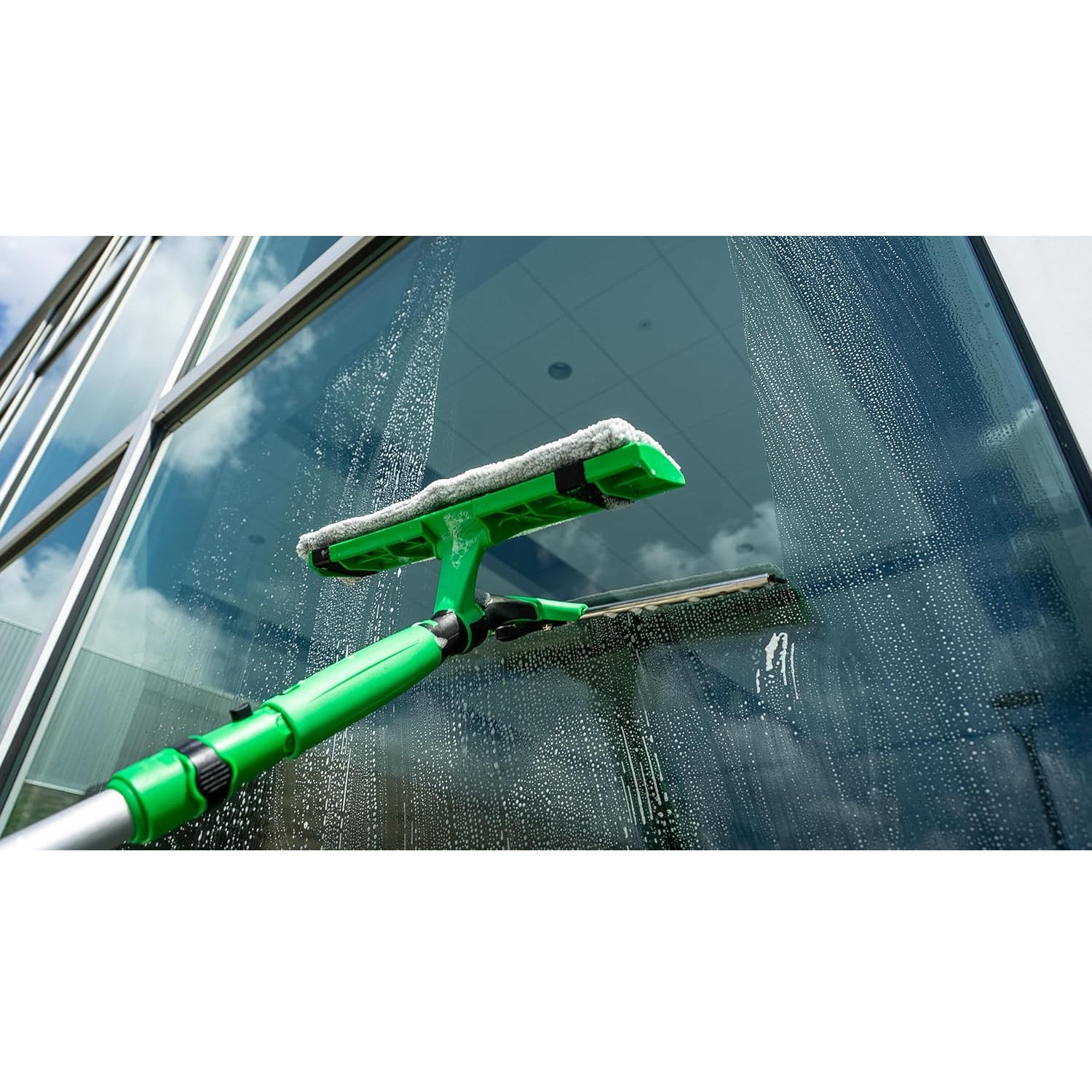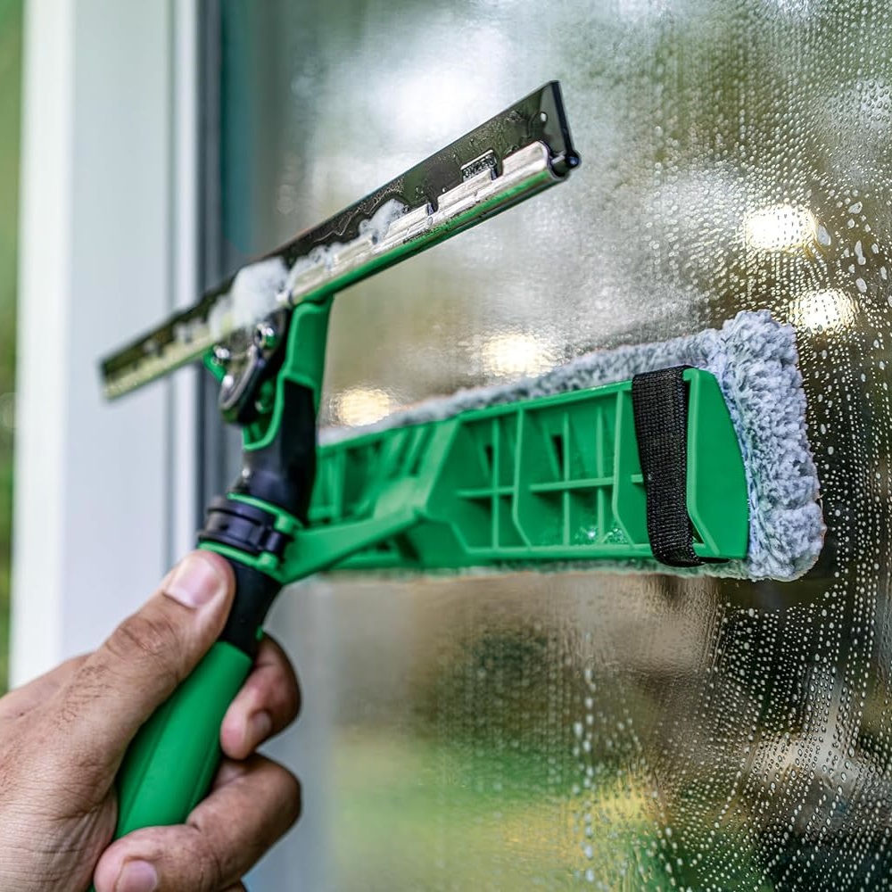 - Bu yenilikçi alet klasik cam temizliğine yenilikçi bir yaklaşımdır. Peluş ve çekçek arasında zahmetli geçişi ortadan kaldırır – zaman ve maliyet tasarrufu sağlar.