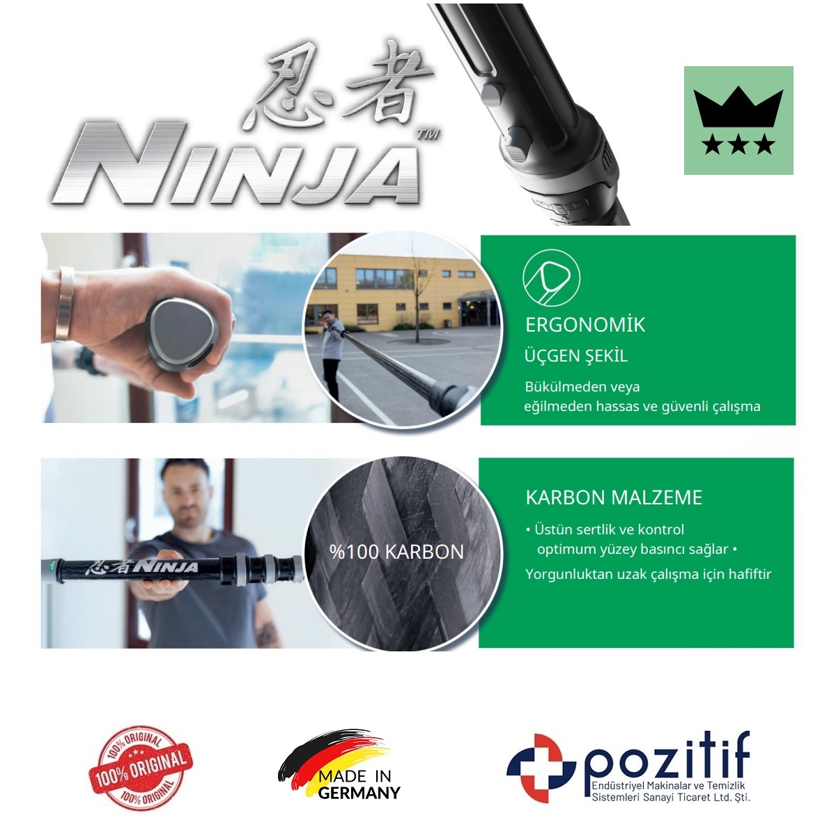 Ninja Karbon Teleskopik Sırık, Unger’in profesyonel cam temizleyicileri için sunduğu birinci sınıf çözümdür.
