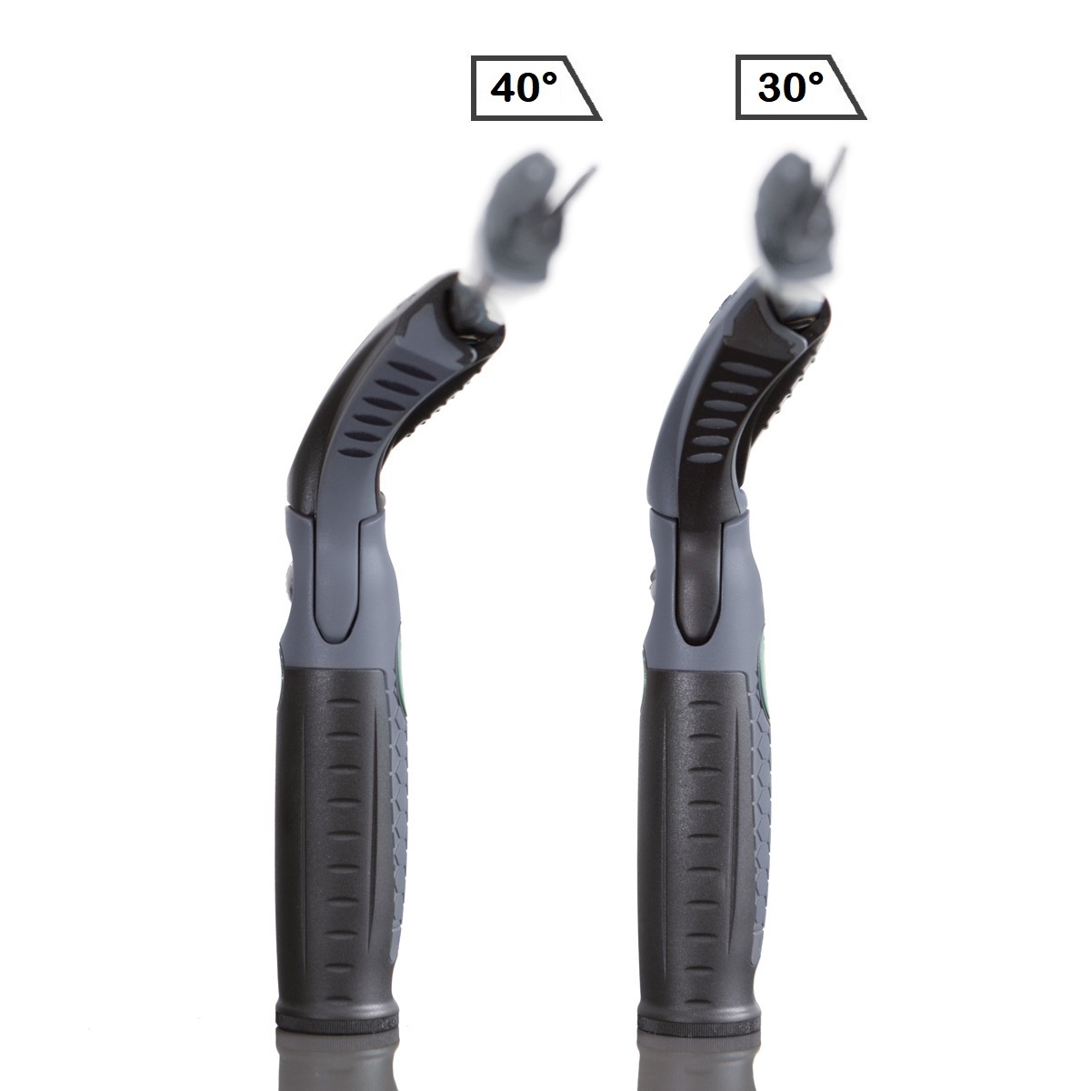 - Oynar başlı pozisyonda 180 derece dönebilir. Elcik üzerindeki yeşil butona basmak suretiyle sabitlenebilir veya oynar başlı konumda kullanılabilir.