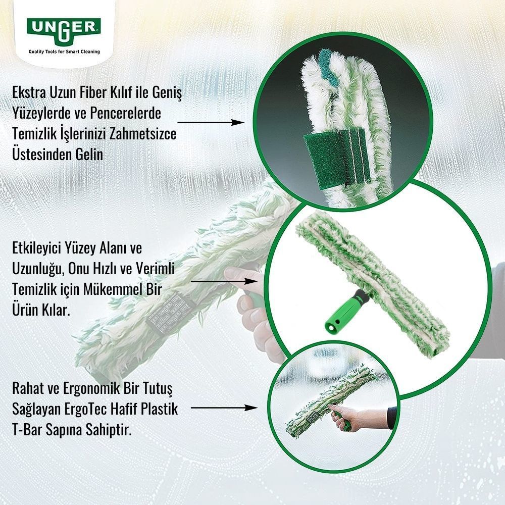 Unger MicroStrip Mikrofiber Cam Peluş Takımı – Plastik Tutamaklı – 35 cm